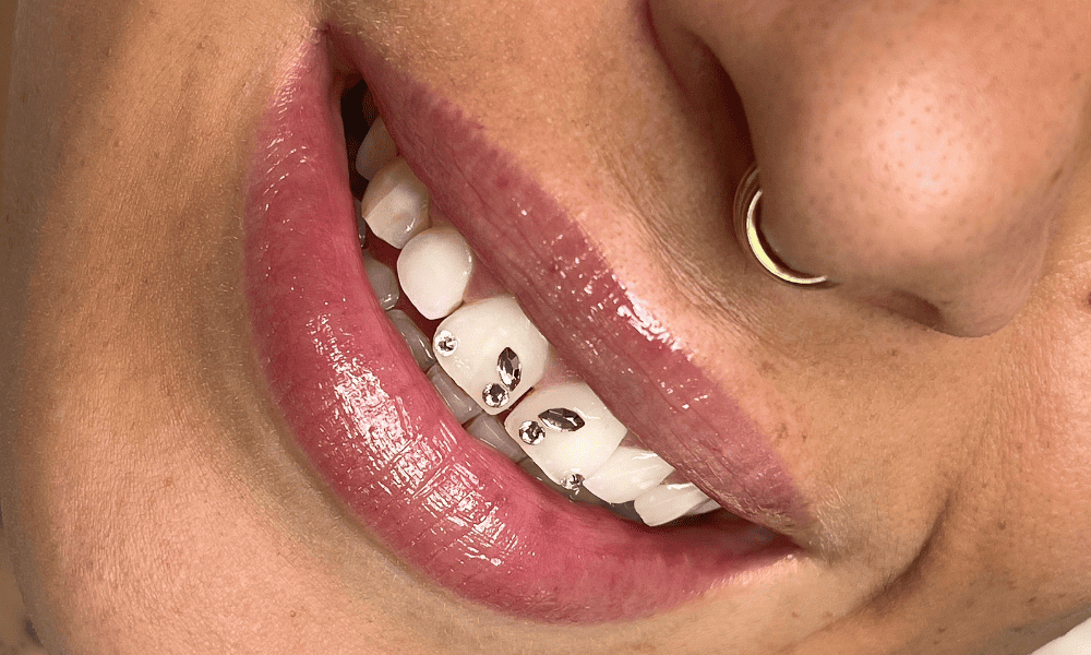 Formation strass dentaire à Bordeaux (Gironde). Pose de bijoux dentaires esthétiques, pratique sur modèle réel et accompagnement étape par étape.